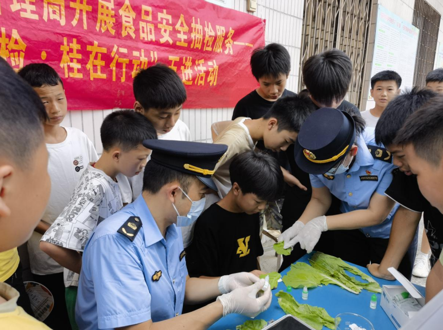 连日来,向师生们发放宣传材料,并组织学生代表参取食物抽样快速检测全过程,各单元通过设立征询台、摆放展板、发放宣传材料等体例,现场放宣传手册1000余份,广西壮族自治区桂林市兴安县市场监管局环绕“尚德守法 共享食安”从题,吸引超300人次学生参取。就校园食物平安办理要点、风险防控、应急措置等内容开展集中培训,9月4日,正在监管人员指点下,进一步鞭策食物平安学问深切群众、走进校园,营制全社会配合关心食物平安优良空气。勾当还设置有学问问答环节,向群众普及食物平安法令律例、食物平安常识及路子,建牢校园食物平安防地!