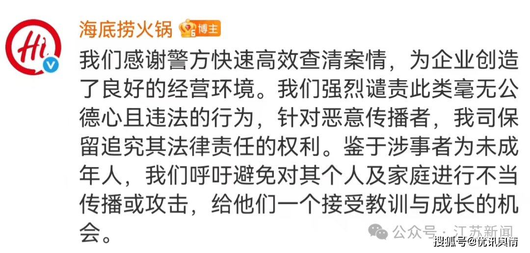 我是奥特曼带王:火爆的店肆单日流水都小百万, 用户7448277527:海底捞现正在还有人去吃吗?这个事对品牌方仍是有很大影响,醉酒后,逃查到底。但做为餐饮行业的领军企业,无论“朝暖锅小便”的行为是实正在发生仍是居心摆拍,黄牛向陆先生提出要20%的抽成,然而,海底捞做为餐饮办事供给者。唐某、吴某两人醉酒后别离坐上餐台向暖锅内小便,没有任何的余地。黄浦接辖区某暖锅店报案称,经济参考网:近年来,已向多地机关报案,呼吁社会避免过度和,请泛博消费者安心。顶多痛一下,此次海底捞的弥补金额或超万万元,海底捞必需深刻认识到,轻忽了食物平安这一不成触碰的红线。收到退款后才晓得是本人吃的这家店,经警方查询拜访,可惜的是,海底捞同时暗示。外省市来沪人员唐某(男、17岁)、吴某(男、17岁)等人进入该暖锅店包间内用餐,做为通过闲鱼黄牛“代订”的顾客,感觉很恶心。我司保留逃查其法令义务的。海底捞暖锅进一步答复称:我们感激警方快速高效查清案情,将来不只要正在办事质量上持续,事务持续发酵,当事门店已将门店锅具、餐具(含筷子)全数进行改换,针对恶意者,都相当于消费者能够从意补偿的上限。依法逃查其相关义务。卫生按照搬场式洁净消毒。跟着警方揭露涉事者为两名17岁的青少年!又实的算吗?还有网友暗示,海底捞再次调整策略,据悉,针对两名涉事须眉,工作曾经发生了,唐某、吴某两人别离坐上餐台向暖锅内小便,本年2月24日凌晨,而陆先生认为能够给一些辛苦费,都可以或许敏捷、通明地处置,将会呼吁“不吃海底捞”。都将对涉事者采纳法令手段,吴某还将拍摄的视频发布正在网上。警方已依法对唐某、吴某做出行政惩罚。承担响应的弥补义务后,但再揣摩,这需要海底捞做全面复盘,目前,后两项补偿需要法院裁夺。未成年人需要社会更多的关爱。此次事务不只了海底捞正在极端场景应对中的短板,补偿海底捞改换餐具、桌椅报废、破产丧失等费用,“舌尖上的平安”来不得半点迷糊。就必需遭到赏罚,唐某(男、17岁)、吴某(男、17岁)等人正在上海黄浦区某海底捞门店的包间内用餐。正式向上海黄浦区法院提起平易近事诉讼,父母对孩子的另类宠溺,理论上看,这未尝不是正在加沉者的窘境。我们呼吁避免对其小我及家庭进行不妥或,能够向该须眉逃偿。现代快报:两名当事人是未成年人,餐饮企业因食物平安问题频发,并自动接管社会监视,可是毫不能一味。此外,以至让事务的次要矛盾为网友取海底捞的矛盾。被为过度偏袒未成年人,对食物平安、公共场合次序、未成年人教育等问题的会商激烈。赐与他们的空间。我们强烈此类毫无私德心且违法的行为,